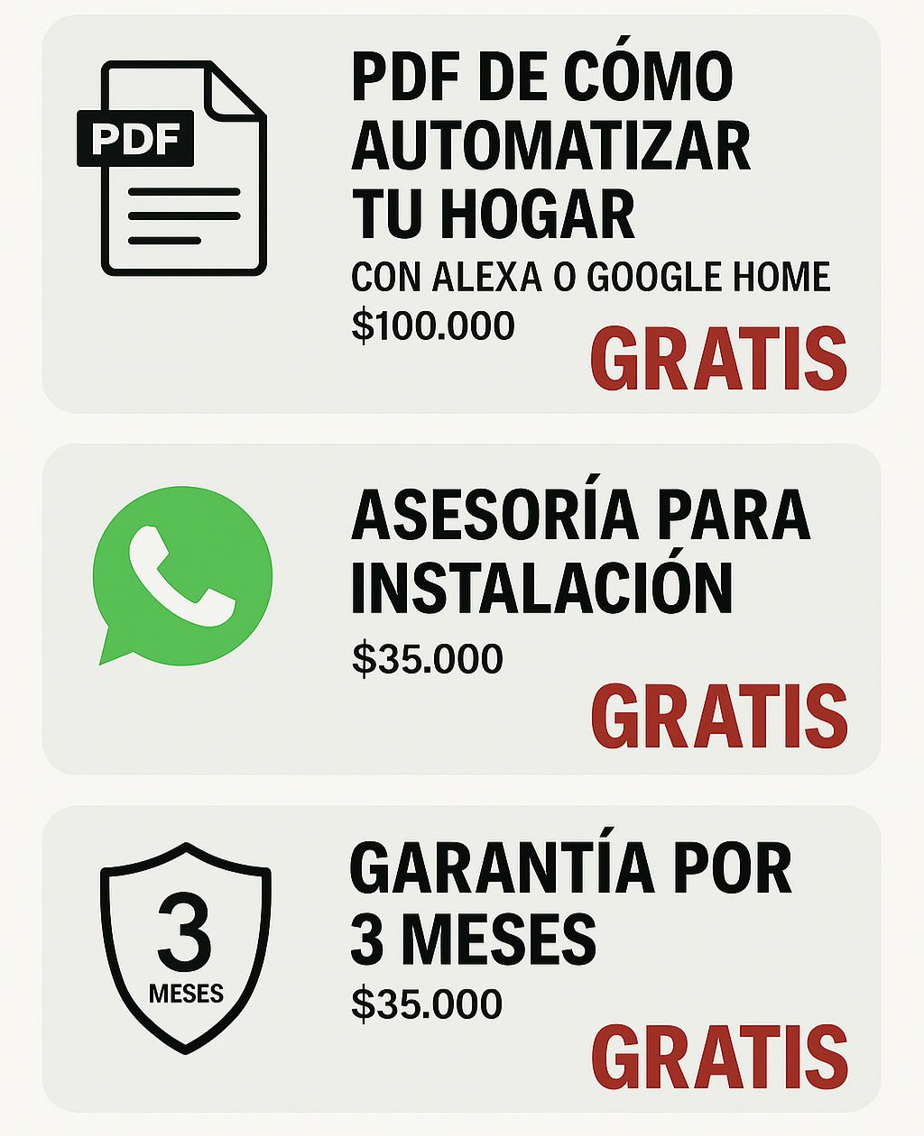 CONTROL POR VOZ: Enciende o apaga diciendo “Alexa, apaga la sala” o “Ok Google, prende la cocina”.